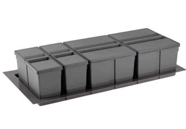 - Balde de lixo com corrediças de extração total y fecho amortizado. Móvel de 60: 2 Baldes de 35 litros + 2 Baldes de 8 litros Material: Cromado