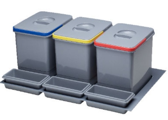 - Balde para reciclagem retangular feito de aço inoxidável escovado com revestimento à prova de impressão digital e equipada com tampas plásticas de soft closing. Os três pedais dão acesso separado aos baldes internos de plástico (3×10 litros), o que torna...