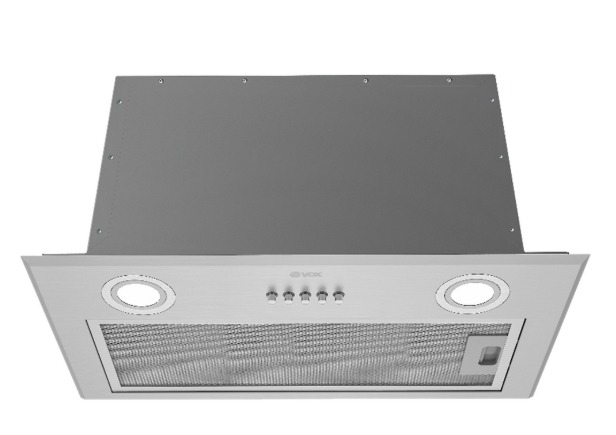 - INFORMAÇÃO DO PRODUTo Instalação: Encastre, extensível Acabamento: Metalizado com frente inox Comandos: deslizantes Medidas: 598 mm Iluminação: Led 2×2,8 W Saída: Ø 120 mm Filtro gorduras: 2 metálicos
