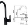 Torneira para banca de cozinha monocomando com areador, cano giratorio e flexíveis 3/8” >350mm